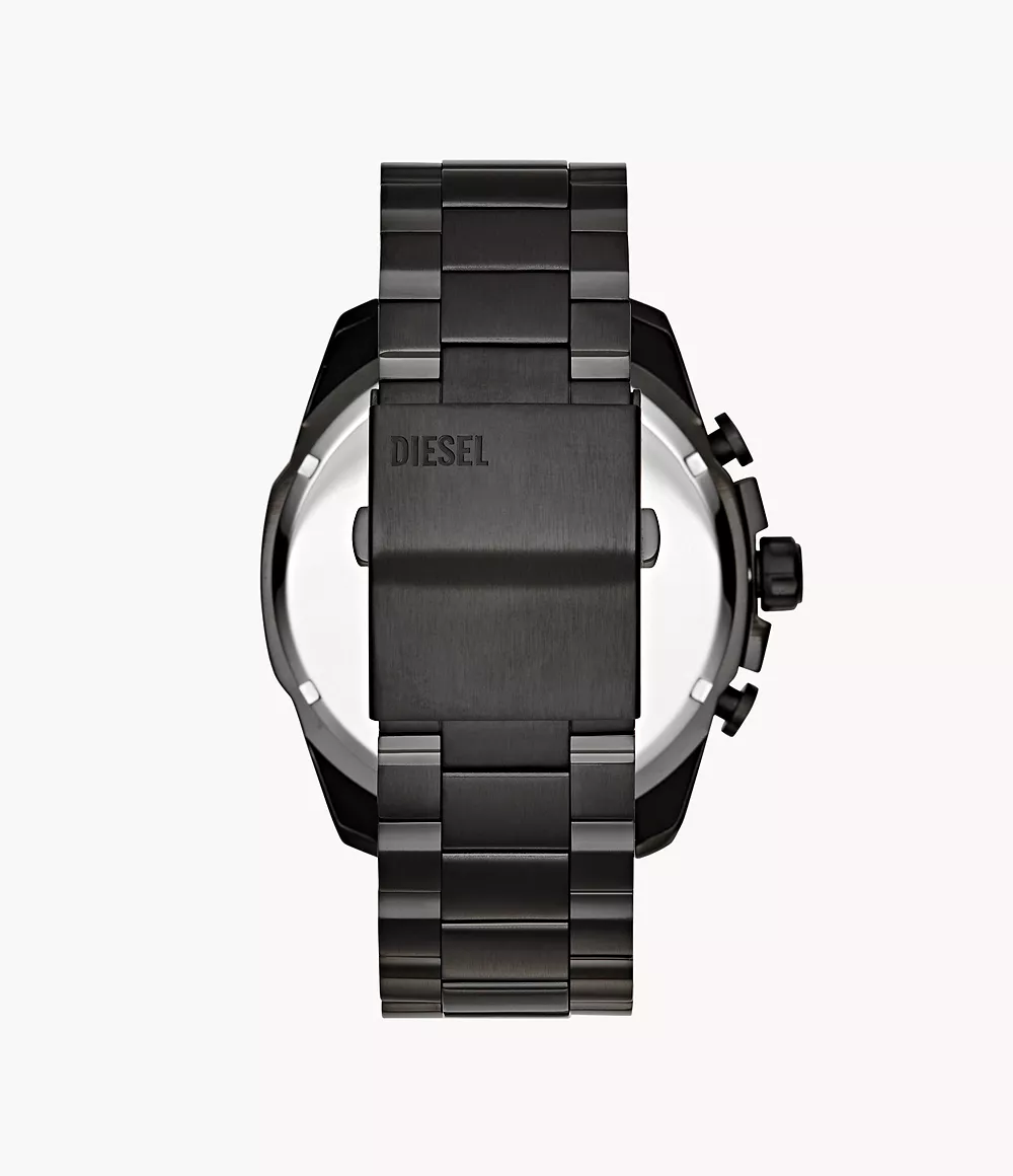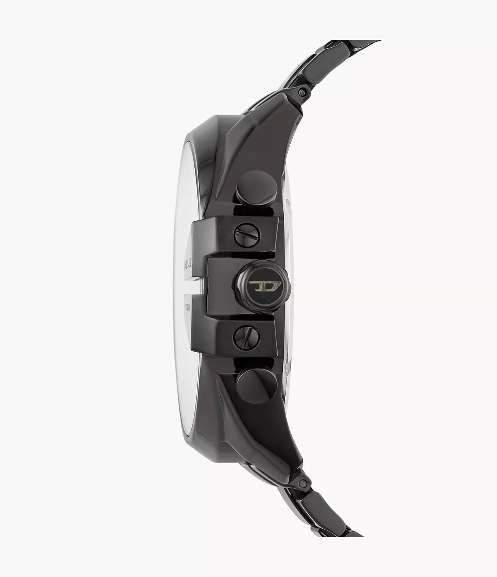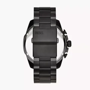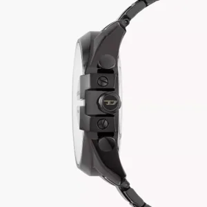 The Diesel Mega Chief DZ4318 is a bold and stylish timepiece designed for those who appreciate distinctive design. It features a substantial 59 mm x 51 mm black ion-plated stainless steel case, complemented by a matching black ion-plated stainless steel bracelet. The striking grey dial showcases a chronograph function with three subdials and a date display, all powered by a precise quartz movement. The watch’s robust design is further accentuated by the « Only the Brave » tag, a signature Diesel detail. With a water resistance of 10 ATM, it’s suitable for swimming and snorkeling. The mineral glass ensures durability, while the push-button foldover clasp provides a secure fit.