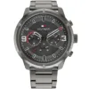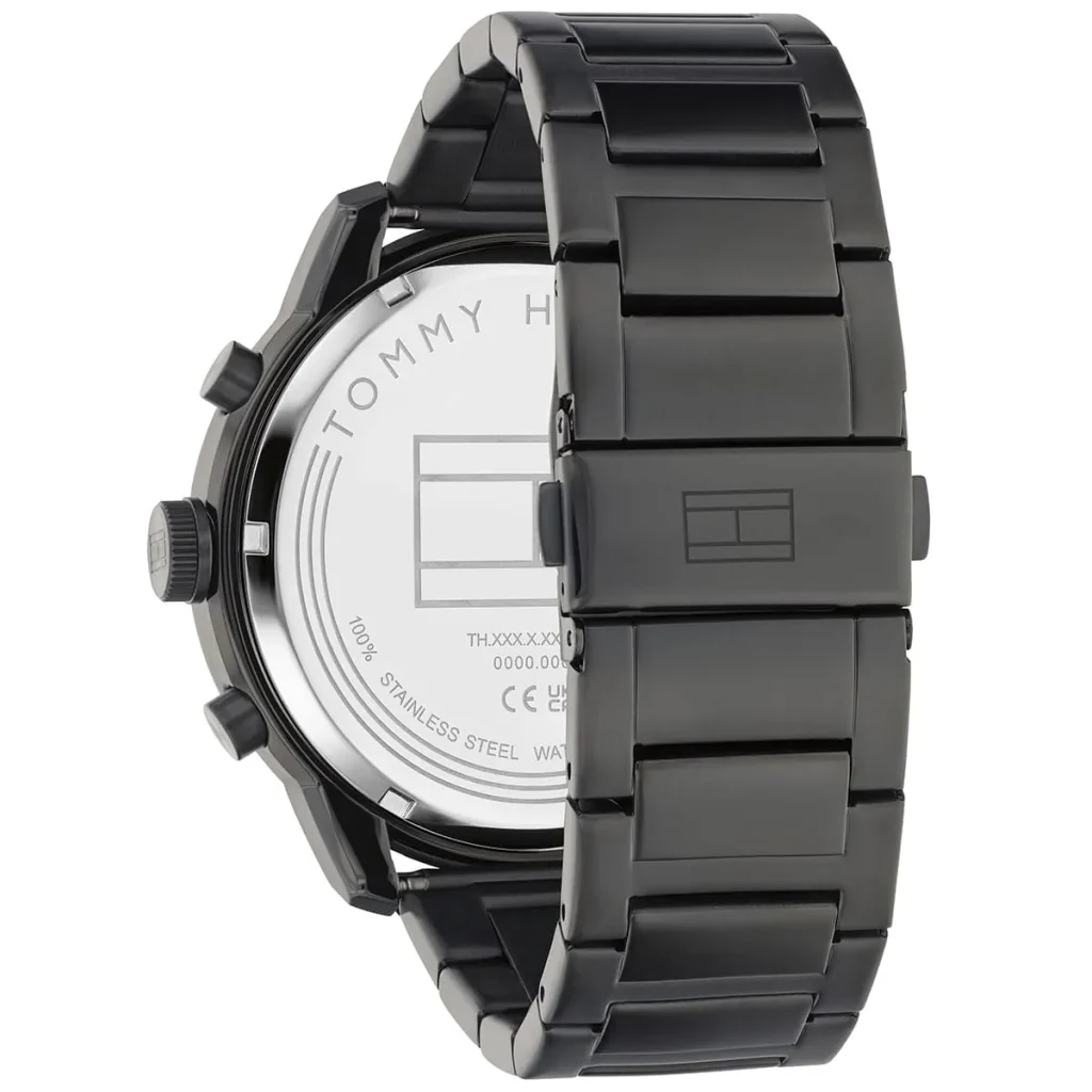 The Tommy Hilfiger 1792070 “Wild” men’s watch strikes a stylish balance between sporty and bold. With its 50 mm stainless steel case, the watch commands wrist presence while retaining balanced proportions when paired with a 24 mm black stainless bracelet. The black dial is accented by date functionality (day & weekday) to offer practicality without crowding the dial.